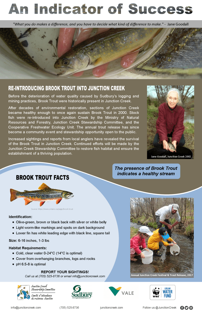 During the festival, people are brought together to celebrate the biodiversity that has returned to the Junction Creek watershed as a result of the community’s dedicated restoration efforts. Interactive displays, free resources, and community displays offer learning opportunities about local wildlife and water quality. Participants also contribute to the restoration of Junction Creek by releasing stock Brook Trout into the creek, courtesy of the Ontario Ministry of Natural Resources and Forestry.